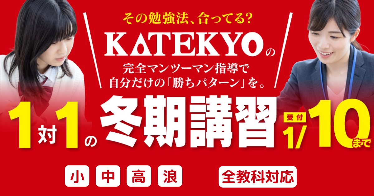 教師の質がKATEKYO学院の自慢です。難関大学の入試問題に対応できる教師から、小学生の授業をわかりやすく楽しく行う教師まで、相性の合う教師をご紹介させていただきます。